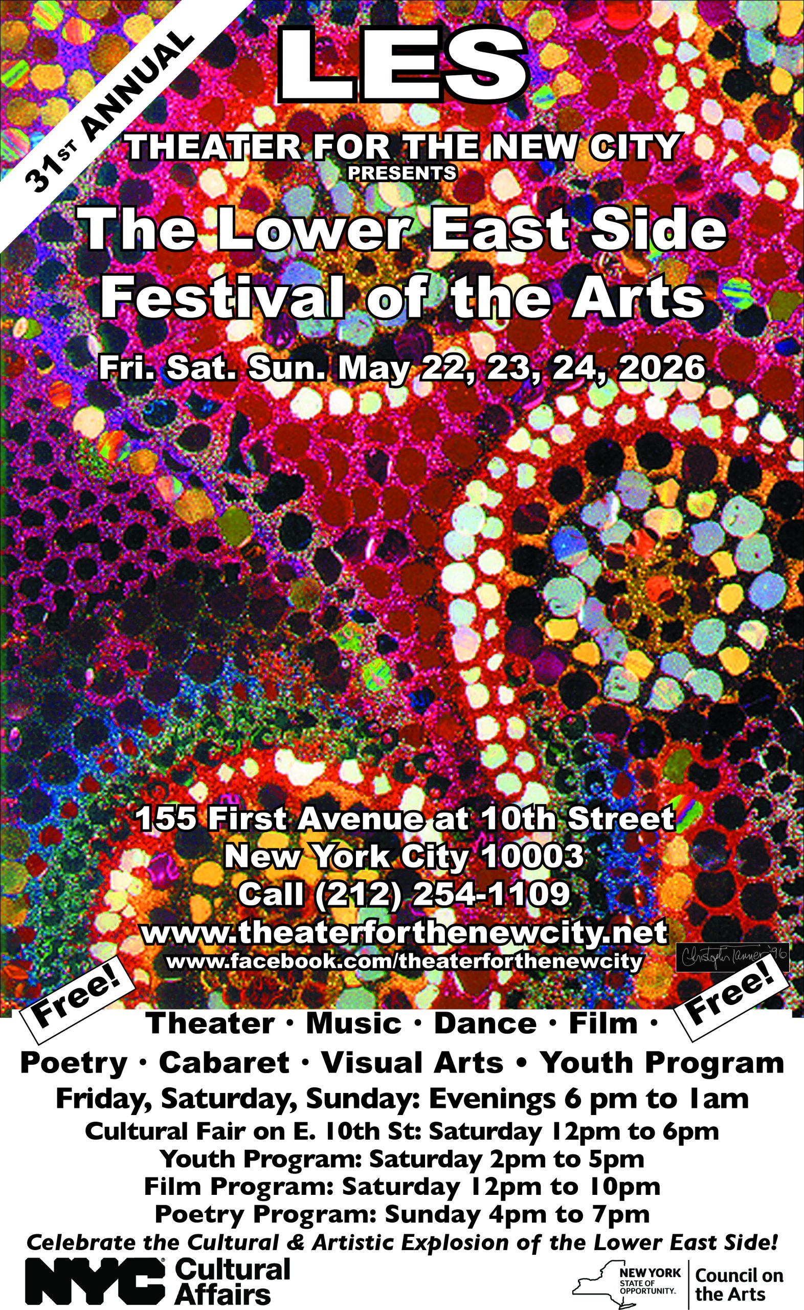 THEATER FOR THE NEW CITY is a unique Cultural Institution that has earned a nationwide reputation for its dedication to nurturing established and emerging playwrights who experiment with new forms and to presenting other experimental and developmental theaters with a very active program of Community Art Services and Festivals which continue to expand theater accessibility.